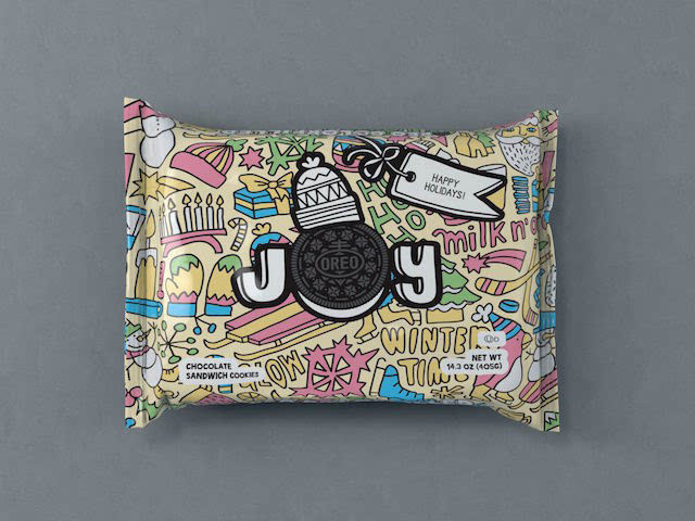 例如2015年奥利奥推出了两款节日限量包装,这款包装由艺术家Timothy Goodman和Jeremyville联手设计绘制图案,顾客完成涂色部分,而这一切全部在线上完成,画完后直接下单、支付、送货上门。